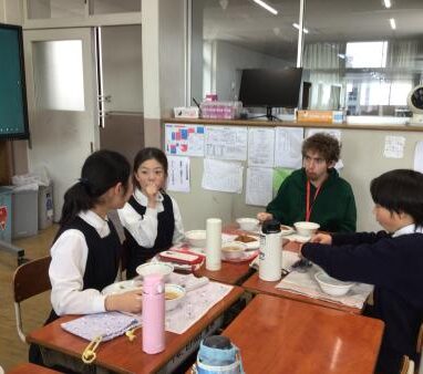 英語で、国際コースは英語で交流しました。どのクラスも大盛り上がりで