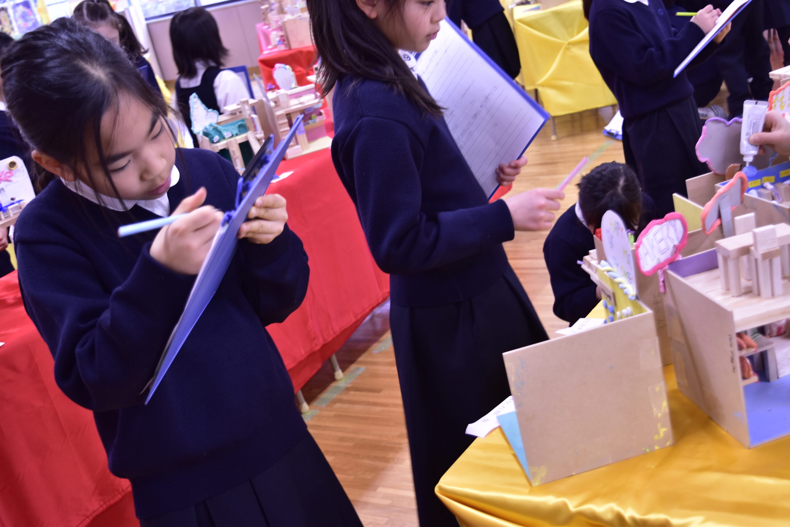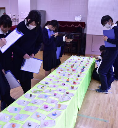 子どもたちは図工の時間や休み時間に鑑賞して、自分や友達の作品のよかったところや工夫したところをたくさん見つけました。