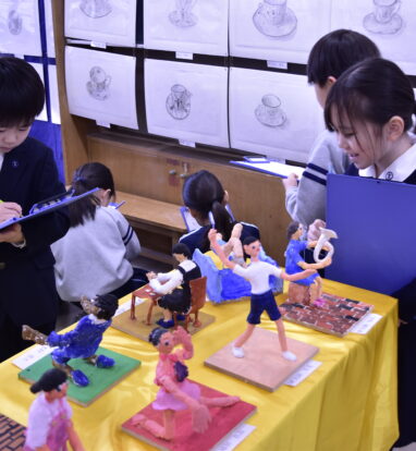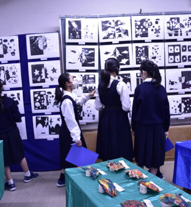 中高生も作品を見に来てくれました。子どもたちの作品を見て、卒業生は懐かしんでいる様子でした。