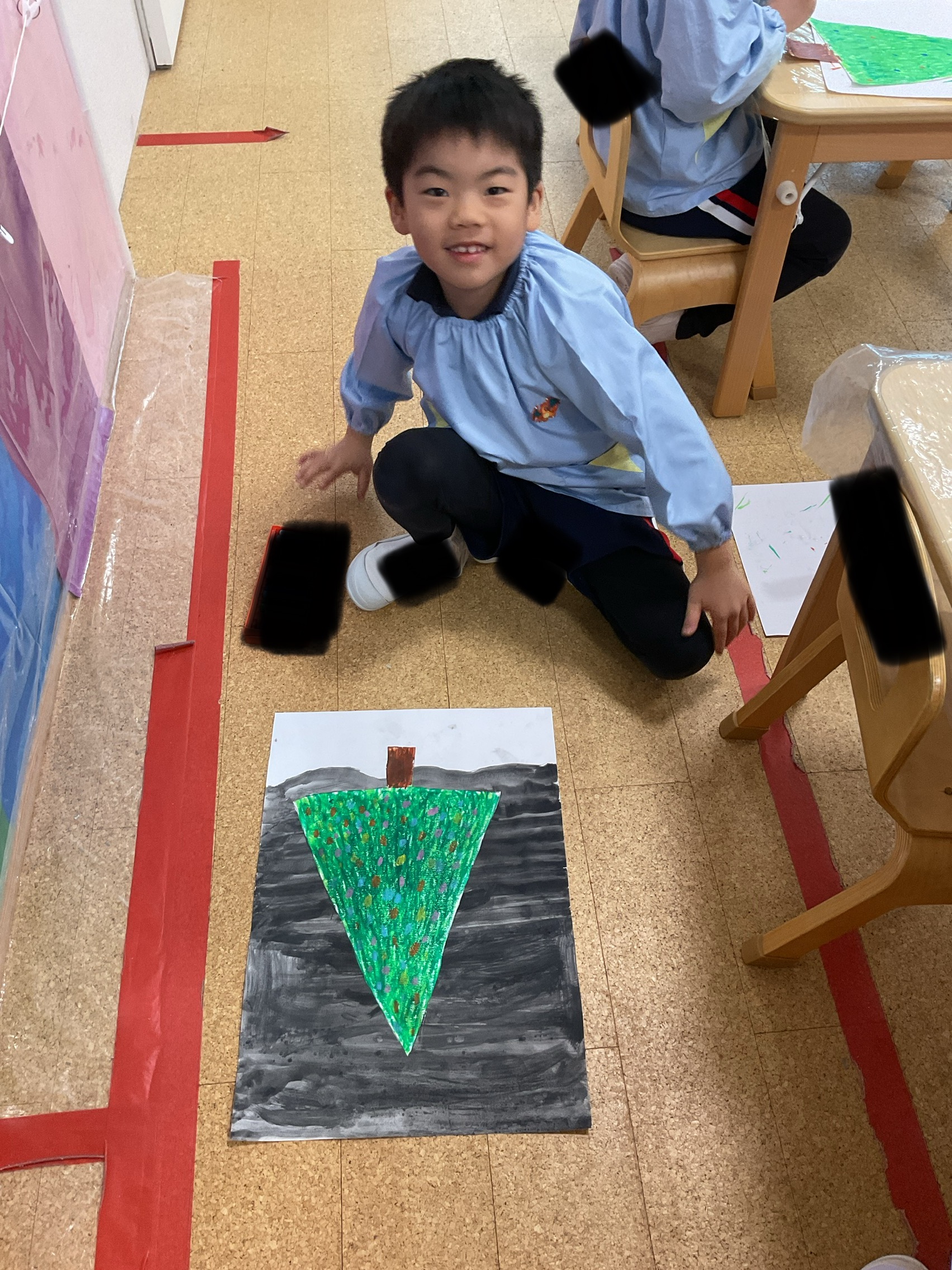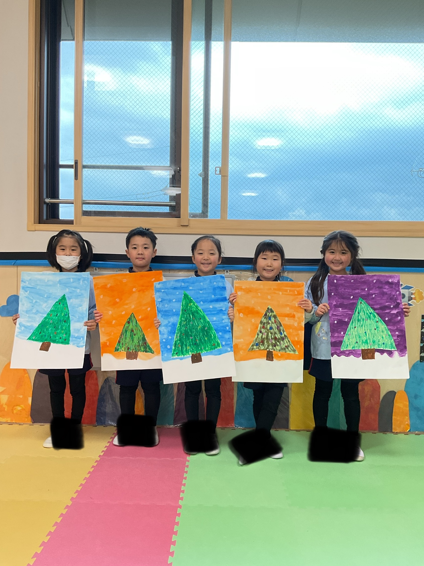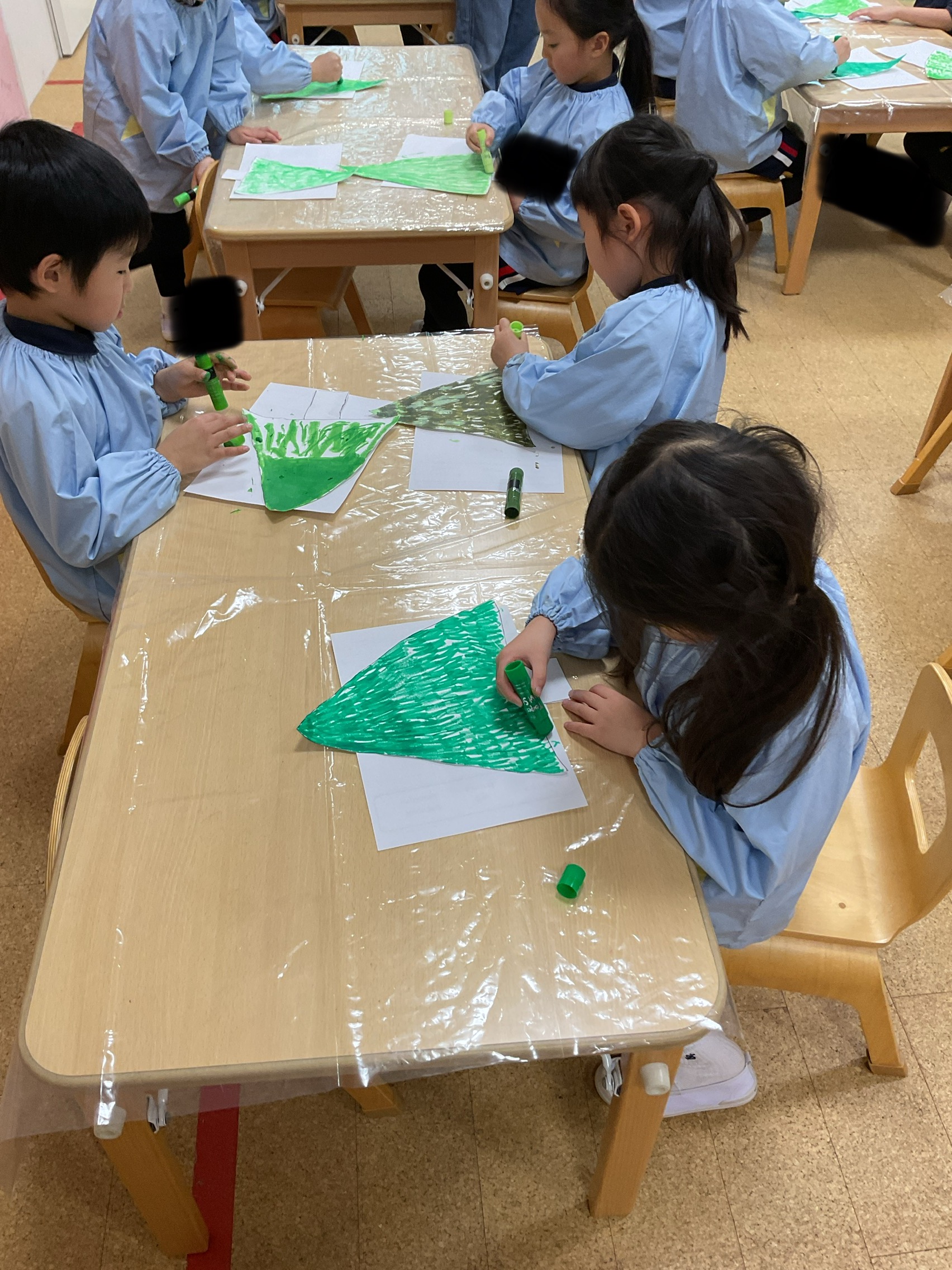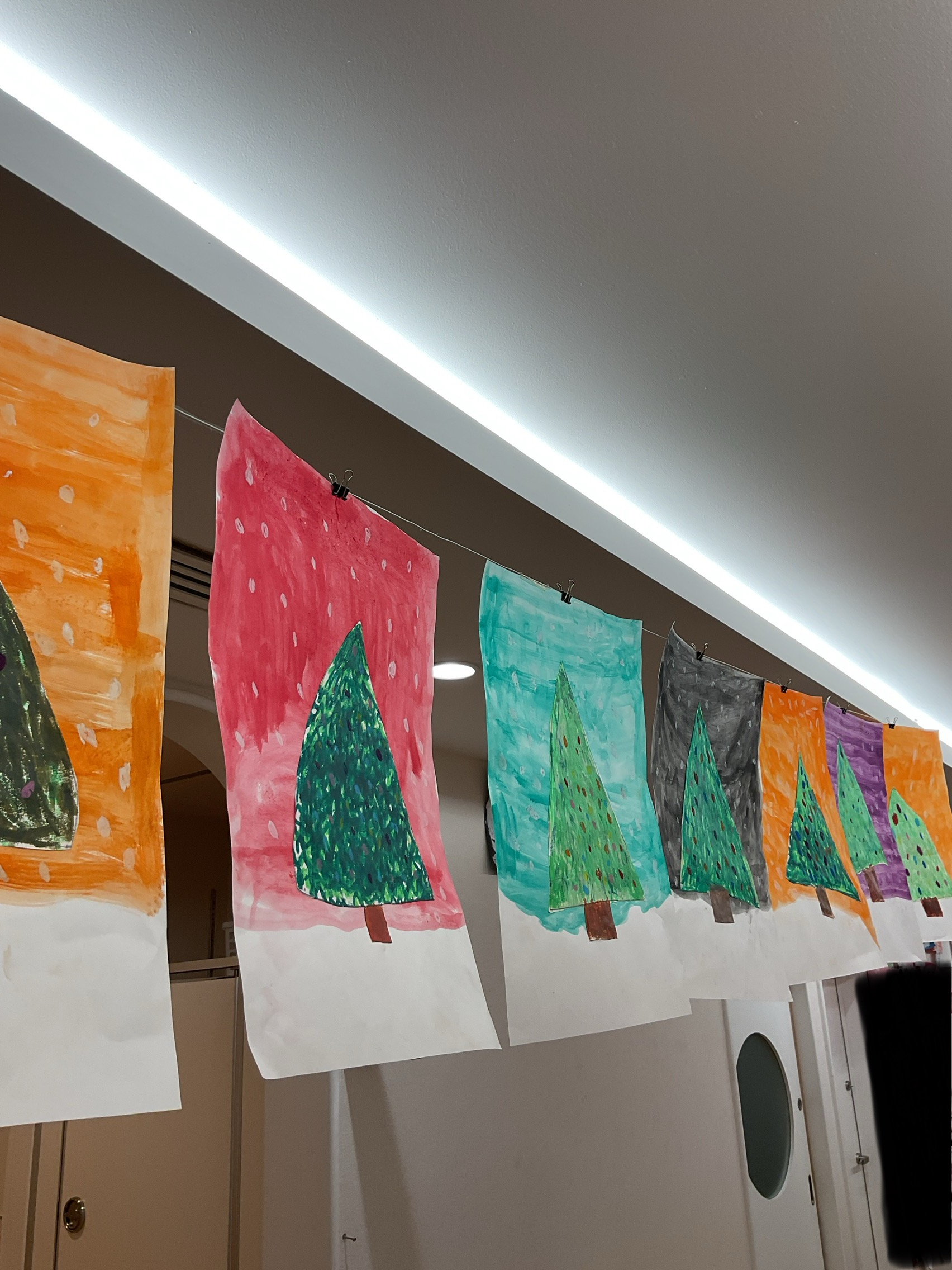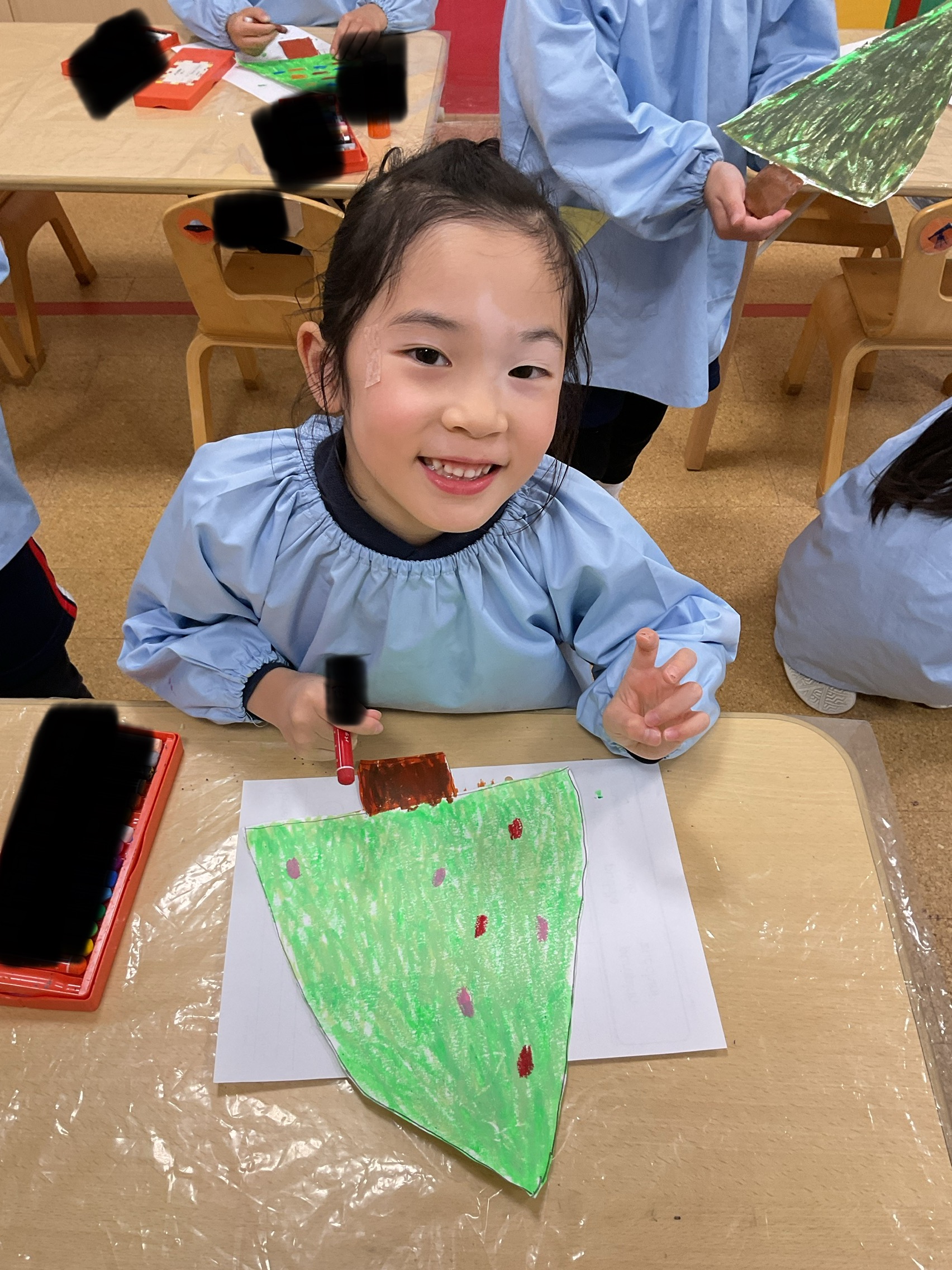 We then added Christmas balls and glued the Christmas tree onto the background.