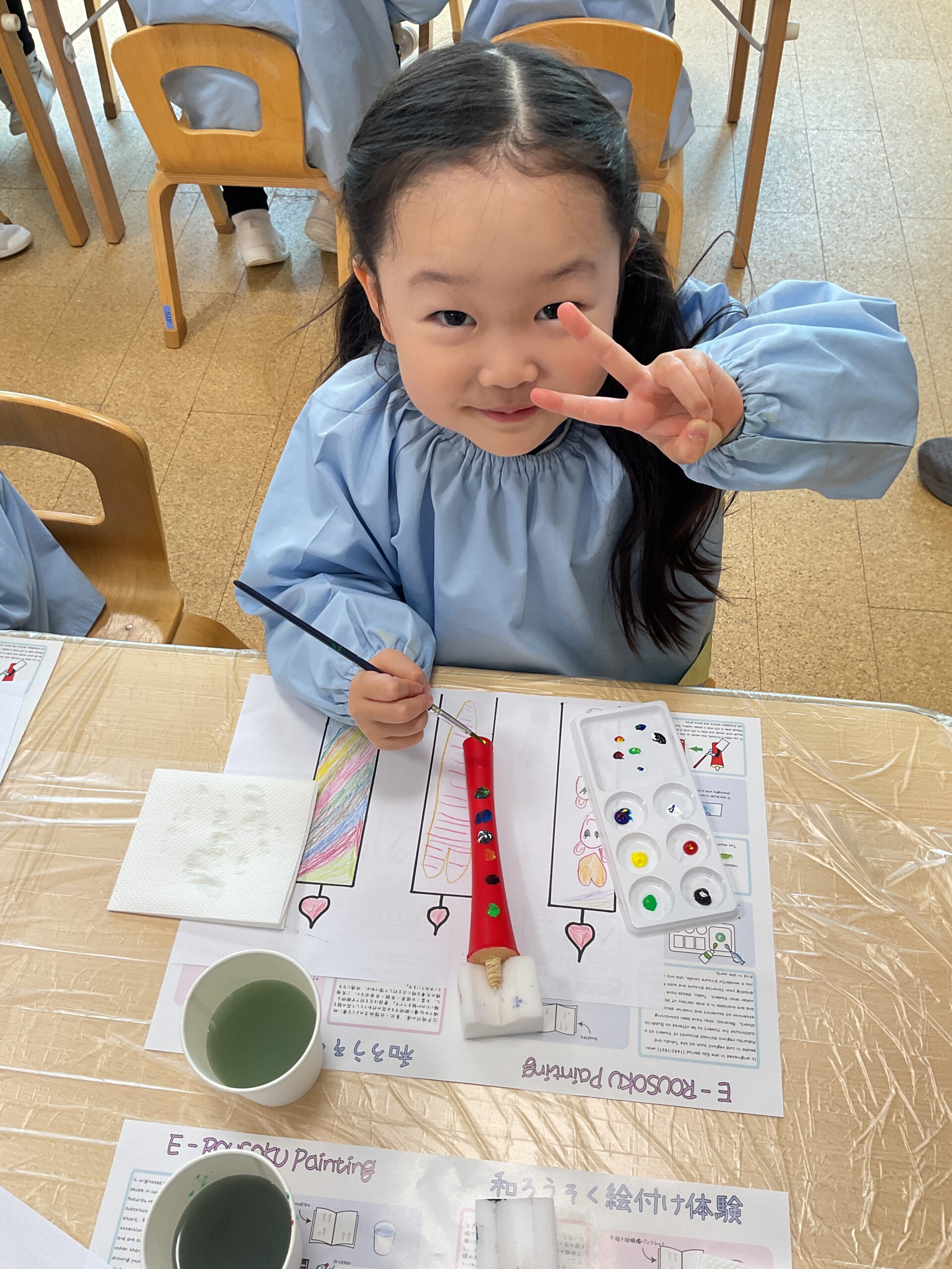 小さな書道家たちの作品は、クラスのお部屋に飾られています。
